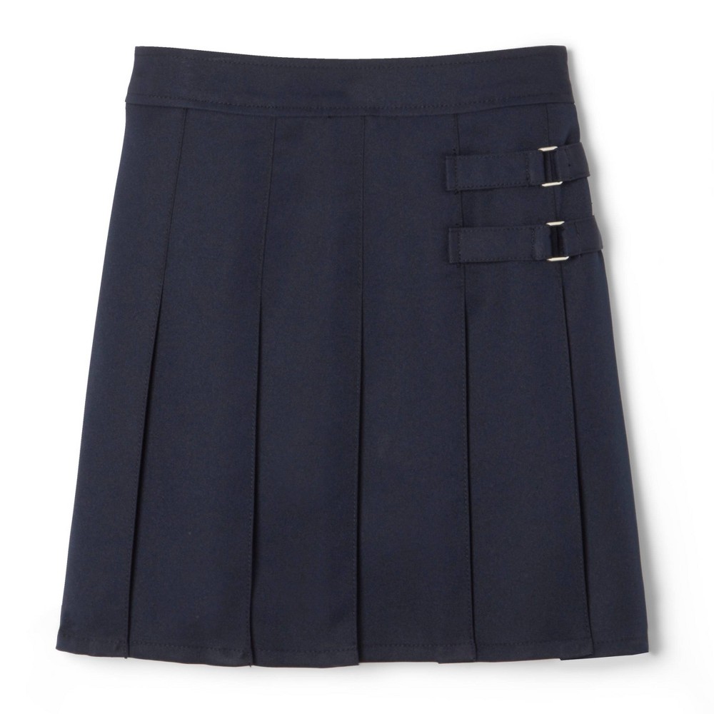 With built-in knit shorts, this pleat-front scooter is an easy way to dress up. Features a decorative tab with silvertone buckle and an adjustable waist for a comfortable fit. Size: 12. Color: navy. Gender: female. Age Group: kids. Pattern: Solid. Material: Polyester.