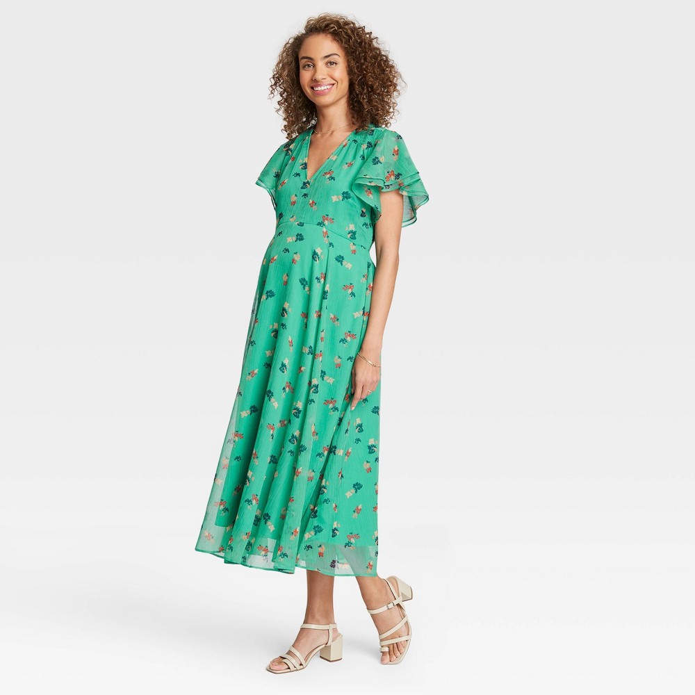 The Nines by HATCH : File under: showstopper. A dreamy dress in crinkled chiffon with pretty flutter sleeves, bump-flattering seams and an elastic detail at the back so you can wear it from the positive pregnancy test to bringing babe home. Suggested use: for making an entrance. Designed to celebrate every stage of mamahood, The Nines was created exclusively for Target by HATCH, the celeb-obsessed + beloved maternity brand known for effortlessly chic pieces for before, during and after pregnancy. This journey is beautiful and unpredictable, and every moment is worth reveling in. We're here for all of it. Style to grow with you, nine months and beyond. Color: green. Gender: female. Age Group: adult. Pattern: Floral. Material: Recycled Polyester.