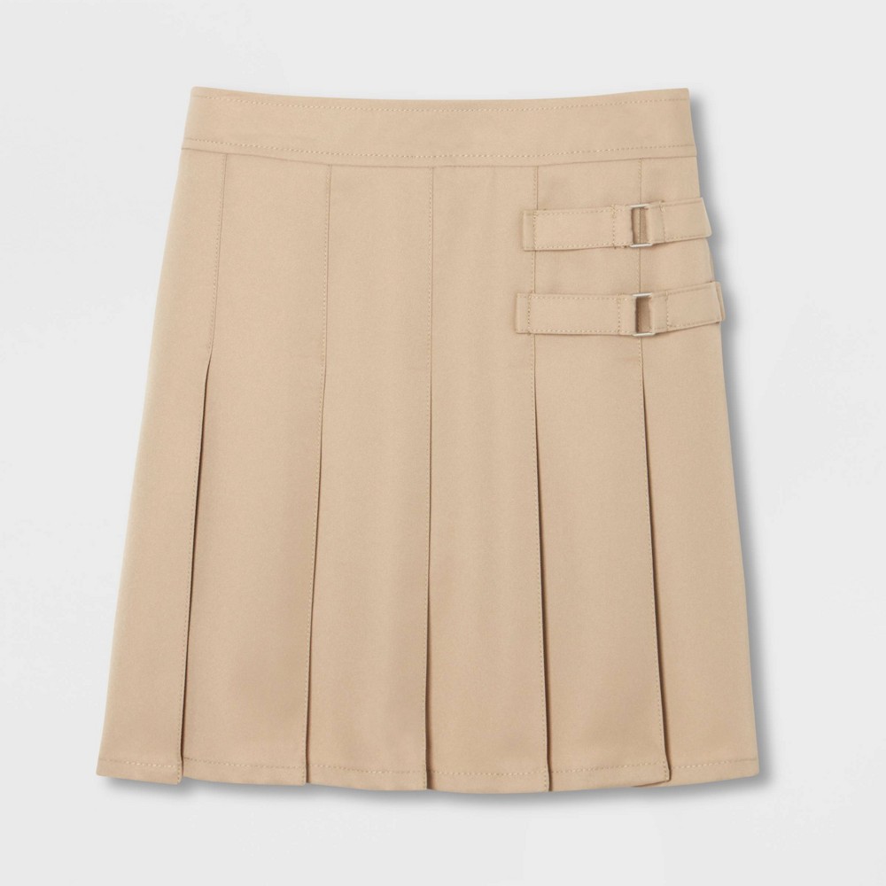 With built-in knit shorts, this pleat-front scooter is an easy way to dress up. Features a decorative tab with silvertone buckle and an adjustable waist for a comfortable fit. Size: 16. Color: khaki. Gender: female. Age Group: kids. Pattern: Solid. Material: Polyester.