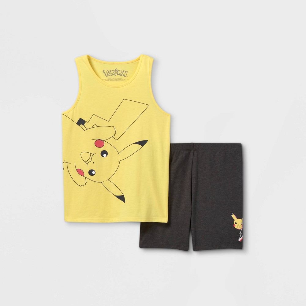 She'll be ready to catch 'em all wearing the Pokemon Pikachu Top and Bottom Set. Made from a soft, cotton-blend fabric, this girls' two-piece clothing set includes a pullover tank top, matched with pull-on shorts fitted with a full-elastic waistband. The yellow sleeveless top is accented with a cute illustration of her fave Pokemon character, Pikachu, across the front, and it's paired with stretchy shorts in charcoal gray that are adorned with a tiny motif of Pikachu for a cute, coordinated look. Perfect for everyday wear, this graphic top and bottom set can be worn as a set or mixed and matched with other clothing to ensure plenty of wear. Color: brown/yellow. Gender: female. Age Group: kids.
