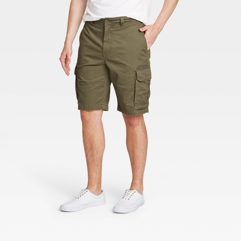 Men's 11" Cargo Shorts - Goodfellow and Co Olive Green 30 Gender: male. Age Group: adult. Pattern: Solid. Material: Cotton.