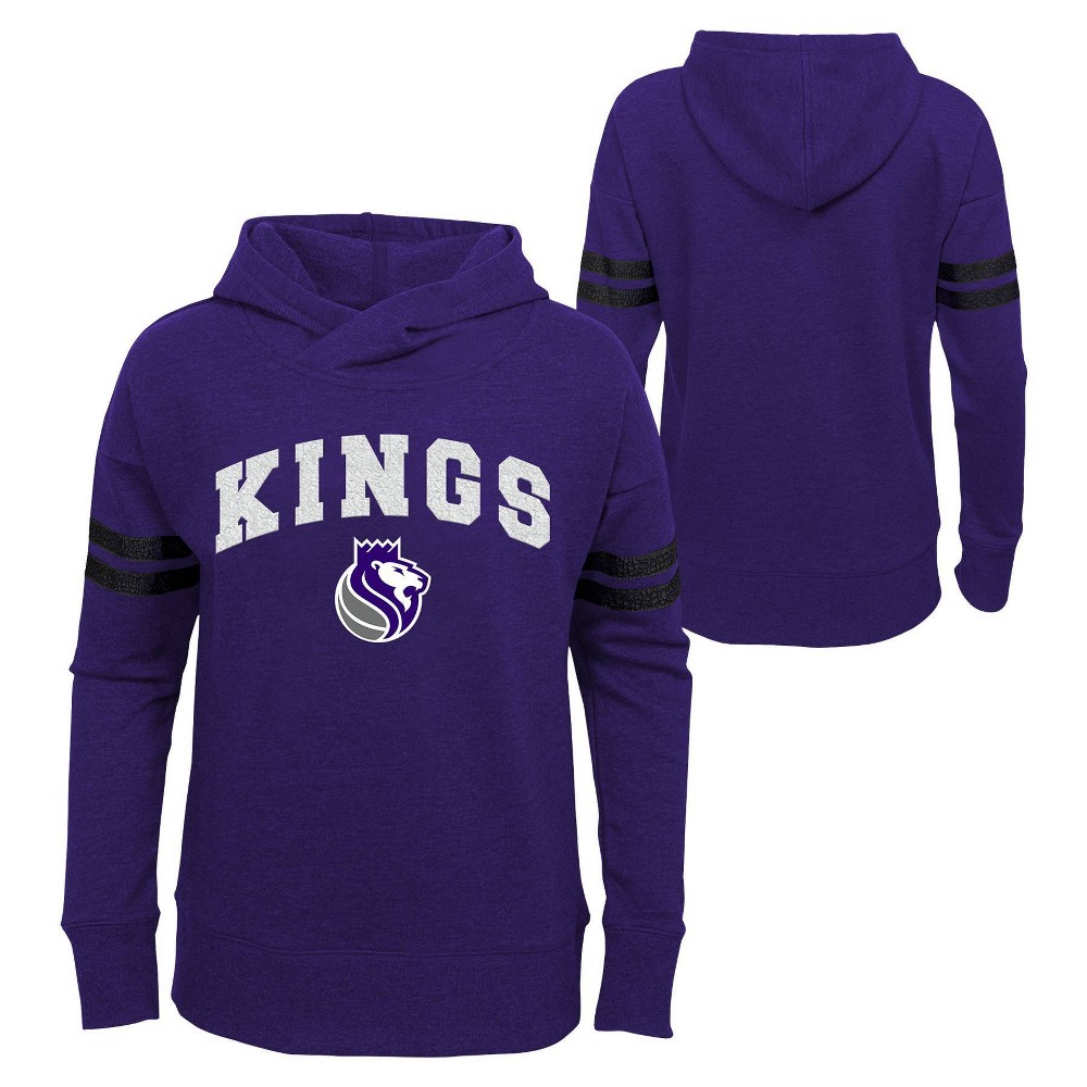 Cheer on the Sacramento Kings in style with this official NBA Girls' Fleece Hoodie. This sports sweatshirt makes your allegiance unmistakable with team logo and team colors. The top features a wide neck and team color striped for a truly athletic feel. Gender: female. Material: Cotton.