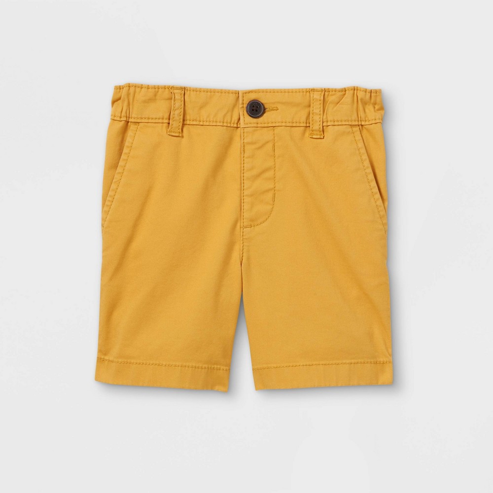 OshKosh B'gosh Toddler : Classic and cool from OshKosh B'gosh, these flat-front chino shorts are a true warm-weather staple. Made of soft twill with added stretch for a comfy yet put-together look, this slim fit pair is built to play. Featuring functional pockets and an adjustable waistband for a fit that grows with him and stays comfortable and snug all day, from class to recess and after school fun. Size: 18M. Color: Yellow. Gender: male. Age Group: toddler. Pattern: Solid. Material: Cotton.