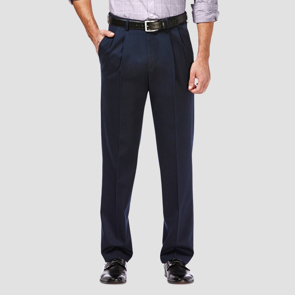 Haggar's Premium No Iron Khaki pants feature a comfortable cotton-blend fabric and our famous expandable waistbands. Made machine washable for stress-free care amd added a permanent crease to create an office-friendly casual pant. Size: 36x34. Color: Dark Navy. Gender: male. Age Group: adult. Pattern: Solid.