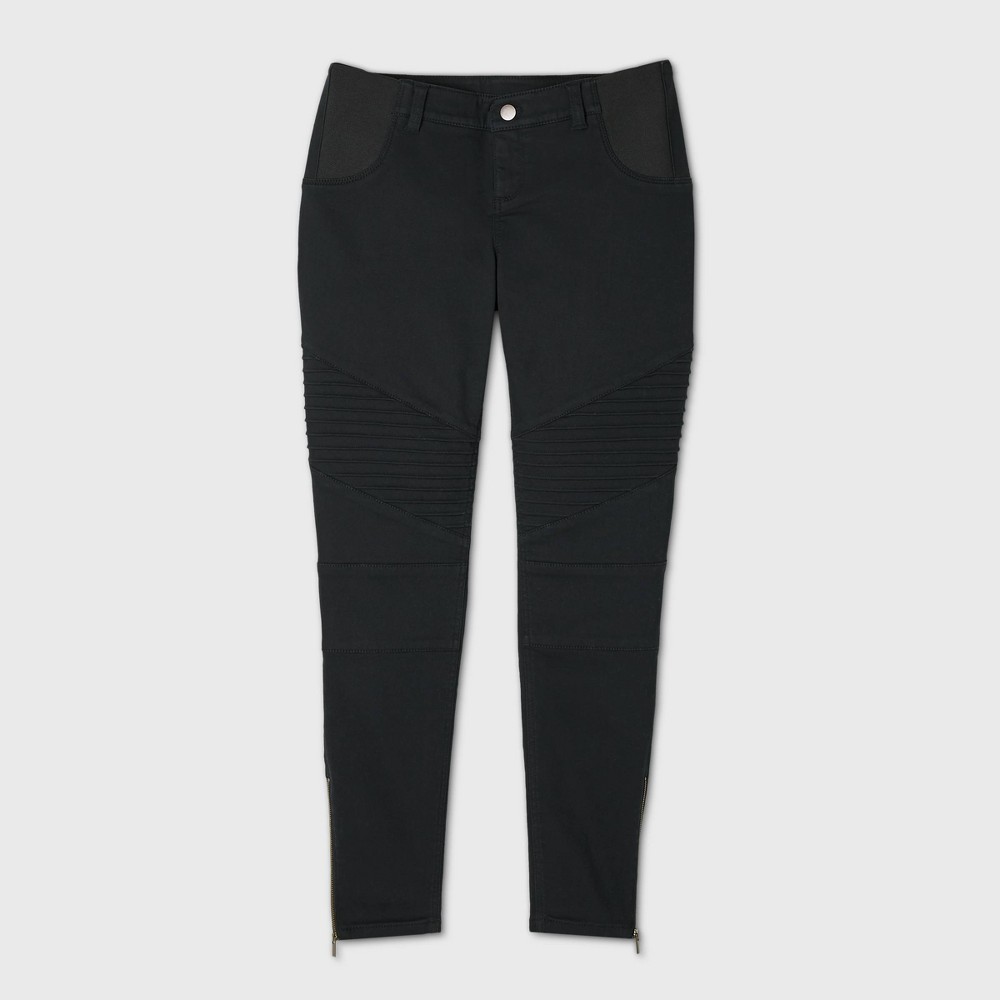 Zipper and moto detailing through the legs give these maternity jeggings extra interest. Power stretch denim sculpts and shapes while adjusting to your changing body. Elastic panels at the waistband fit comfortably throughout and after pregnancy, and the functional fly makes it easy to style just like your regular jeans. Size: 4. Color: Black. Gender: female. Age Group: adult. Pattern: Solid. Material: Cotton.