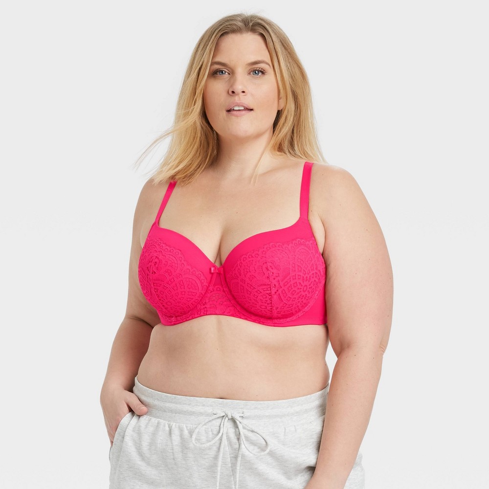 Women's Plus Size : Women's Plus Size Lightly Lined Balconette Bra - Auden Pink 42D Gender: female. Age Group: adult. Pattern: Solid Lace. Material: Nylon.
